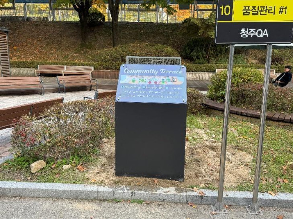 시공사례(실외)_ 시설물납품및설치 컨셉 : 현장 : SK하이닉스실외휴게공간 페이지 정보 작성자그리니숲 댓글0 조회3 작성일26.01.29 06:13 본문 공유 기업상징성부여 기업맞춤디자인설계 이전글시공사례(실외)_ 연말조 26.01.29 다음글시공사례(실외)_ 조화연출유지보수 26.01.29